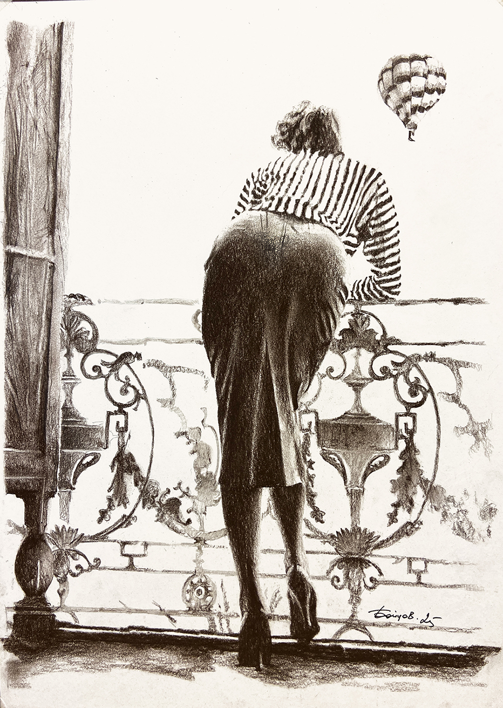 Сепия на бумаге. Работа подписана автором.